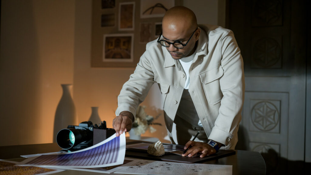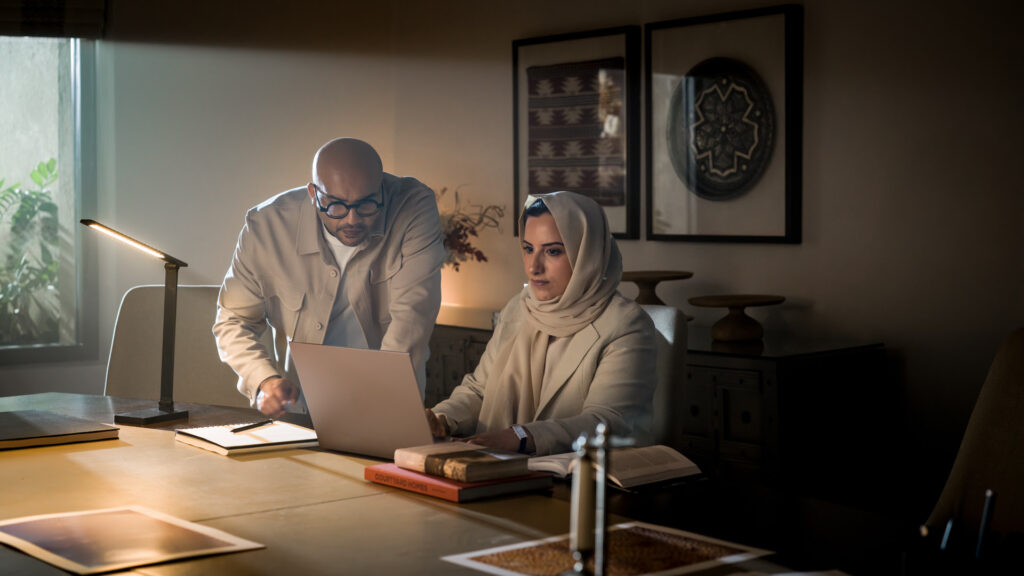 • A dialogue across time: Hussain AlMoosawi’s photography anchors memory and origin, while Mona Algwaiz’s AI-assisted digital practice projects heritage into speculative futures
